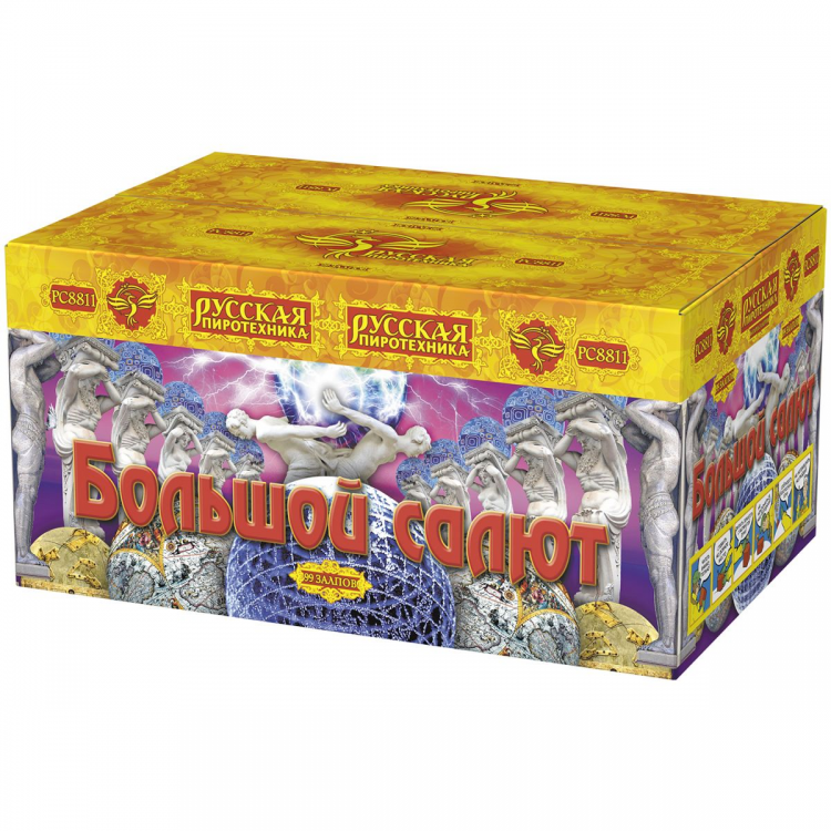 Салют РС8683 Время Первых!, 90 залпов, 1,25" калибр, ТМ «Русская Пиротехника»
