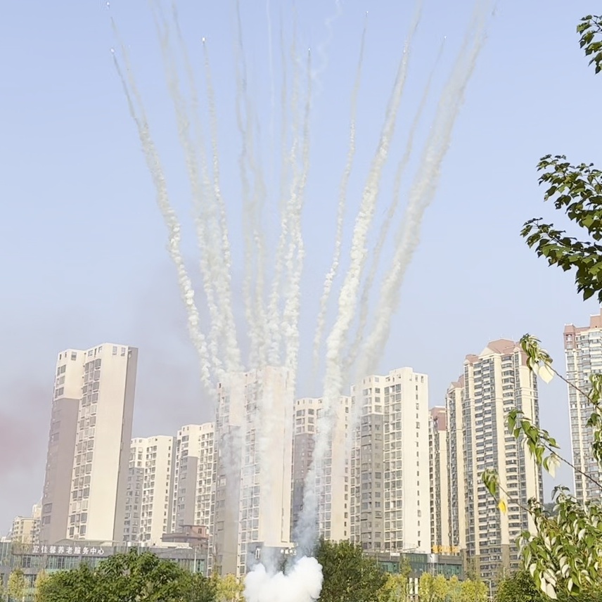 Белый дым со свистом и треском наверху;