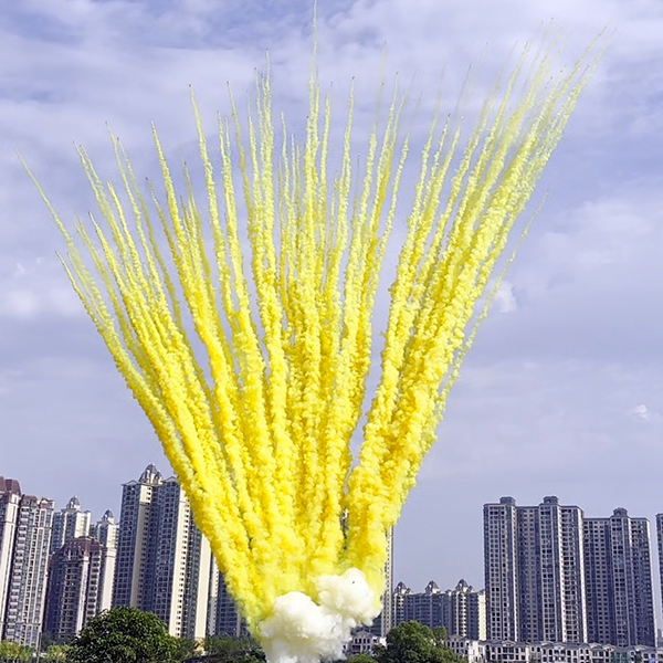 Желтый дым со свистом и треском наверху;