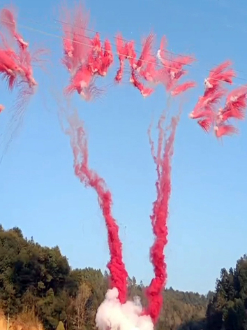 Изысканный выбор для гендер-пати премиум класса: густой дым красного цвета из V-образного шлейфа, который переходит в ниспадающий водопад