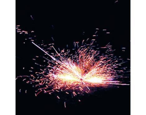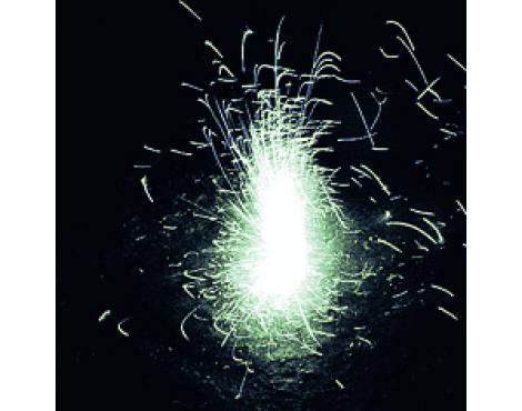 Вертится, образуя круг красного, зеленого, желтого огня.